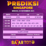 Prediksi SINGAPORE Hari Ini BAZARTOTO – Togel SINGAPORE Tutup jam 17:30 dan Pengumuman Keluaran jam 17:50. Prediksi Pasaran Selalu di Update Setiap Hari Setelah Keluaran dan jangan lupa periksa laman blog kami untuk prediksi lainnya. Prediksi Cambodia – Prediksi Sydney – Prediksi Hongkong – Prediksi Singapore – Prediksi China – Prediksi Taiwan.