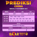 Prediksi CHINA Hari Ini BAZARTOTO – Togel CHINA Tutup jam 15:10 dan Pengumuman Keluaran jam 15:30. Prediksi Pasaran Selalu di Update Setiap Hari Setelah Keluaran dan jangan lupa periksa laman blog kami untuk prediksi lainnya. Prediksi Cambodia – Prediksi Sydney – Prediksi Taiwan – Prediksi Singapore – Prediksi Hongkong – Prediksi China – Prediksi Taiwan.